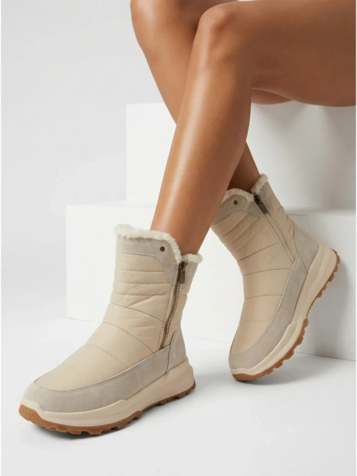 - Страхотни дамски зимни ботуши тип сноубутс с по-дебела подметка. Горната част е изработена от екологична кожа и хлъзгава материя, вътрешността е изолирана с пухкава подплата. Моделът се закопчава с цип. Идеална основа за зимата!