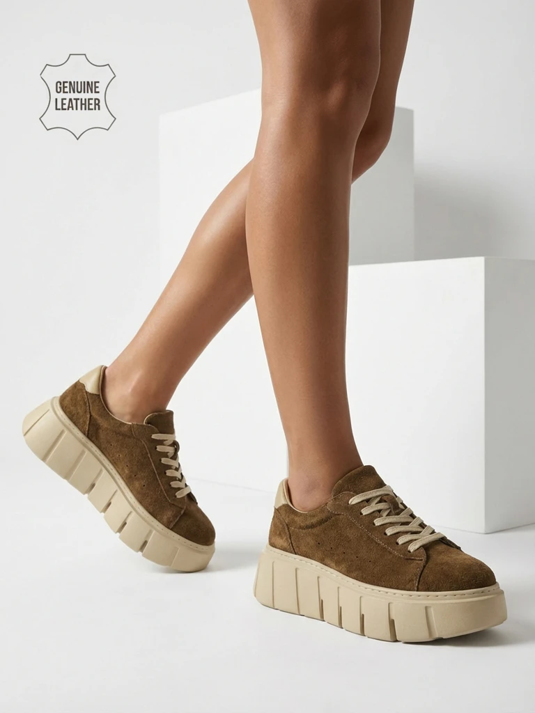 - Стилни дамски сникърси на платформа – идеални за жени, които ценят удобството и модерния външен вид. Естествена велурена кожа, модел с връзки, леки и много удобни.