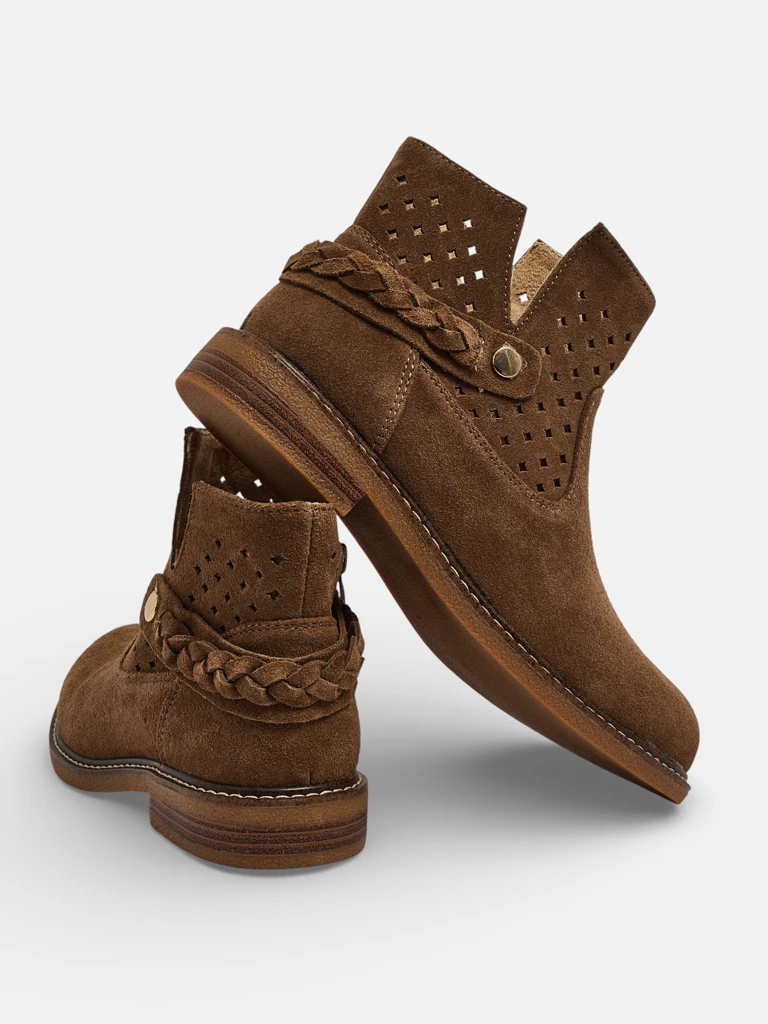 • Уникални дамски ажурни ботильони – естествена кожа, лека конструкция и комфорт при носене през целия ден. Със връзки и закопчаване с цип. Стил и удобство в едно!